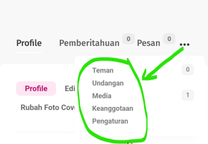 • Jurus ke tiga: klik tanda 3(tiga) titik untuk menu-menu lain nya seperti; Teman, Undangan, Media, Keanggotaan, dan pengaturan.